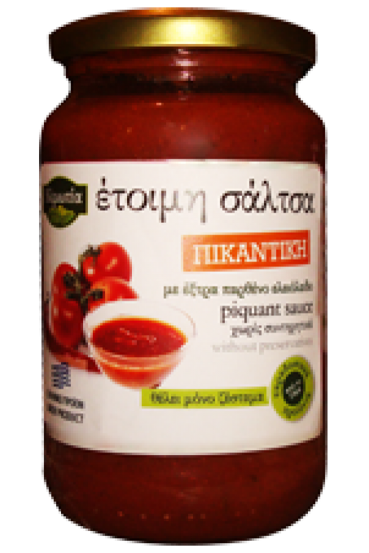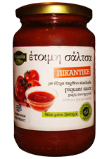 ντομάτα, καυτερή πιπεριά, ζάχαρη, αλάτι, κρεμμύδι, θυμάρι, ρίγανη, βασιλικός, μαιντανός, έξτρα παρθένο ελαιόλαδο / Καθ. Βάρος: 360γρ